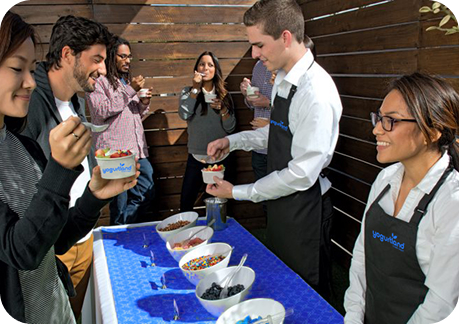 Enjoy pre-swirled Yogurtworld delivered to your event with delicious toppings for a hassle-free experience.
